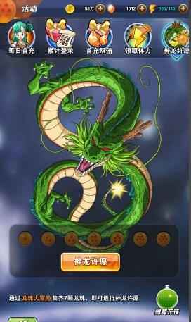 界面会有一条绿色的龙展示,下方会出现七颗龙珠,玩家可通过龙珠大冒险集齐七颗龙珠,即可进行神龙许愿!如果你收集到一颗,龙珠便会由暗变亮,等到这七颗龙珠都亮了,那么你变可以许愿啦!
