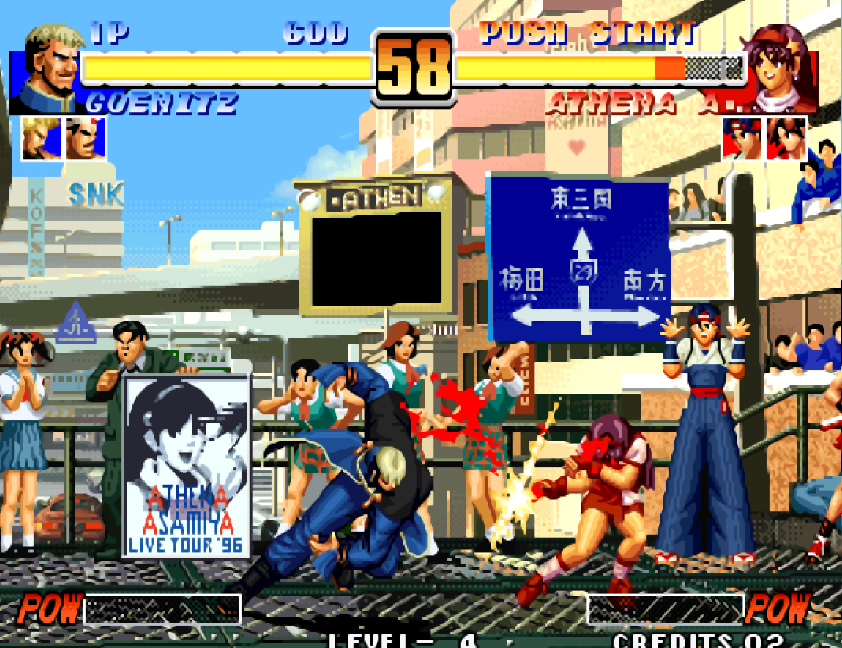 另外游戏中还加入了暴走八神庵、高尼茨、吉斯几位隐藏角色,需要进行“CHALLENGE中的TIME ATTACK模式,完成20个LEVEL之后,隐藏角色才会出现。