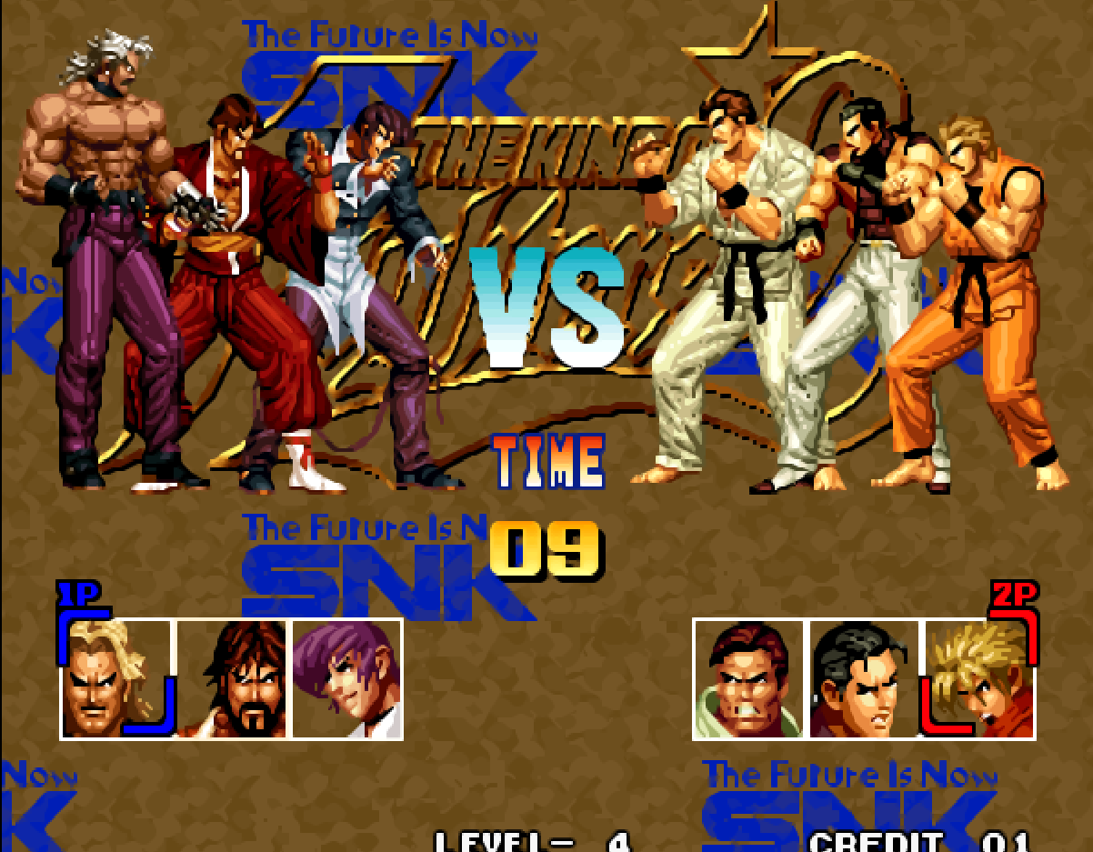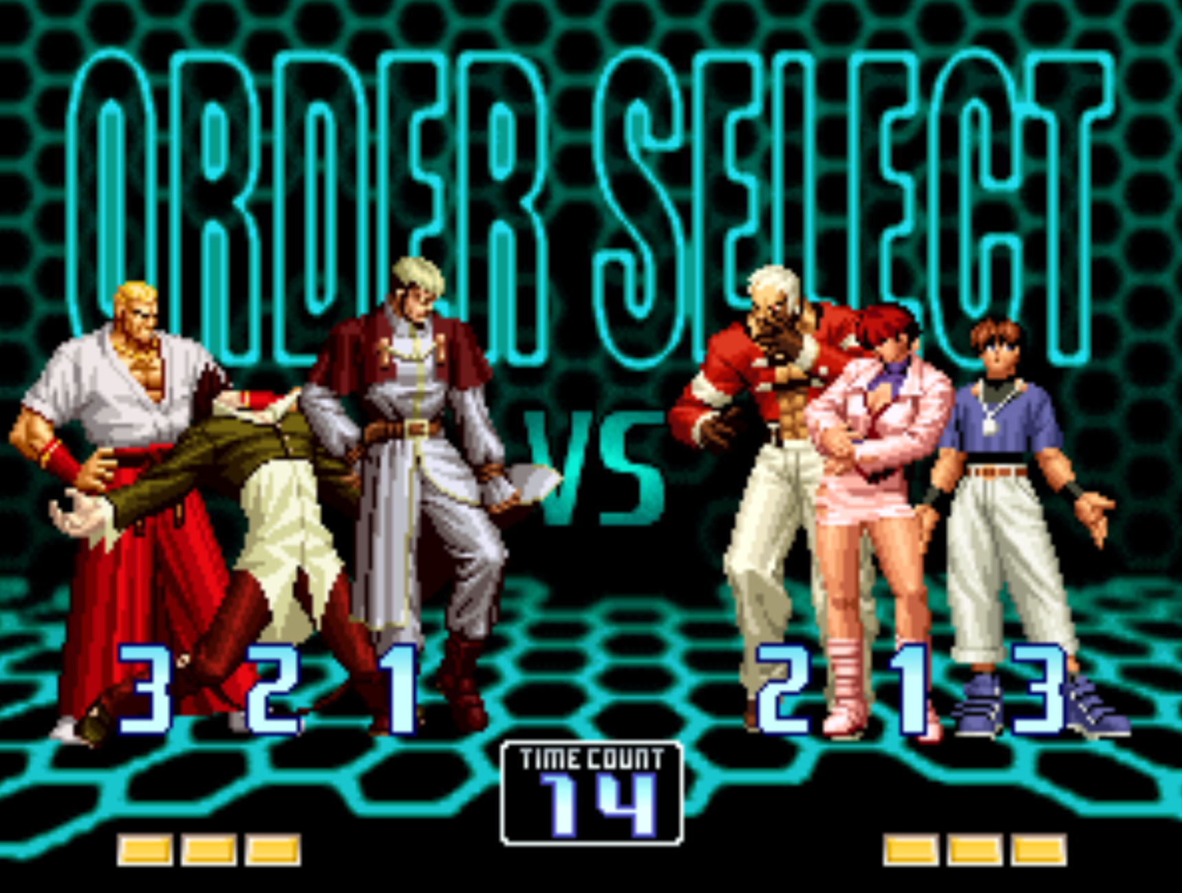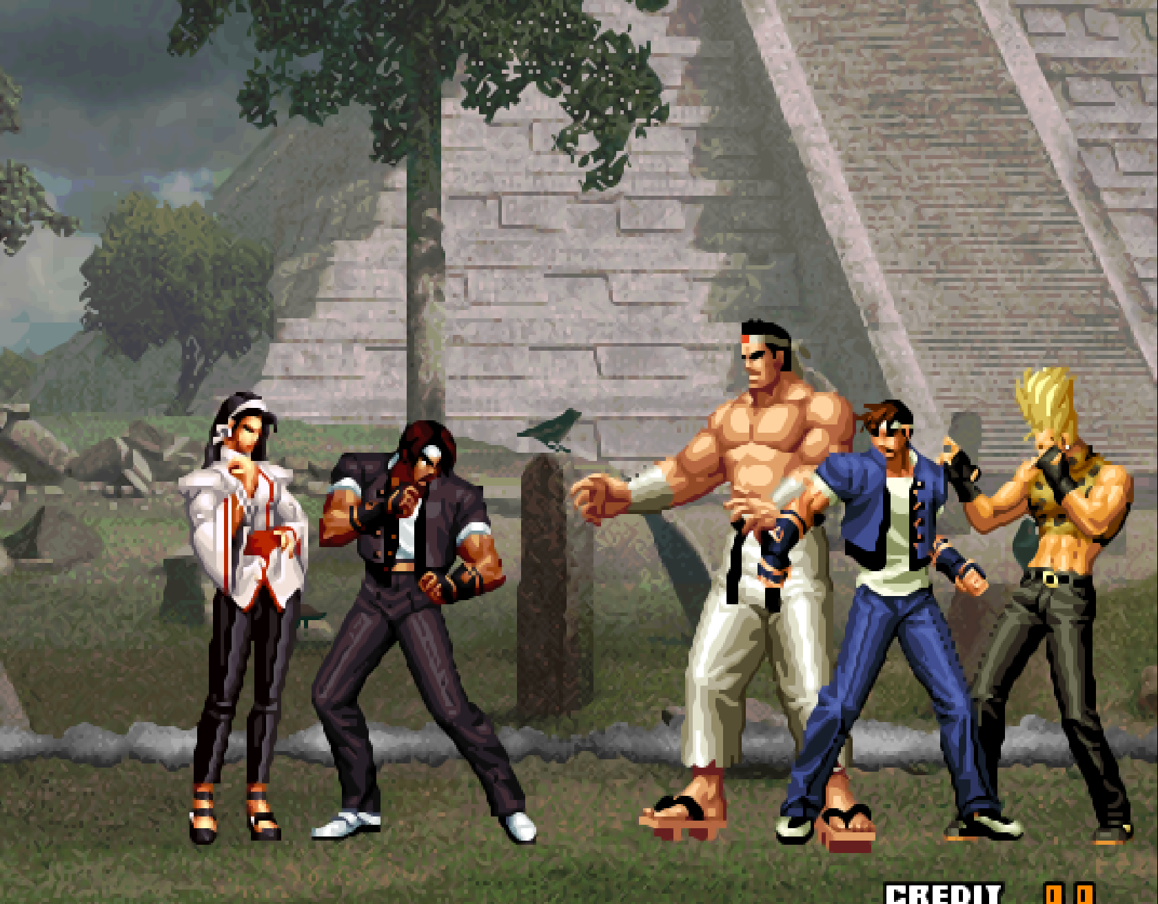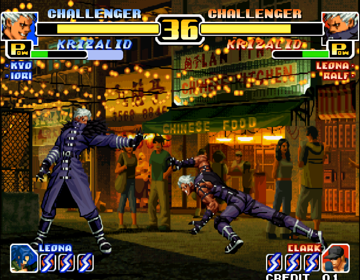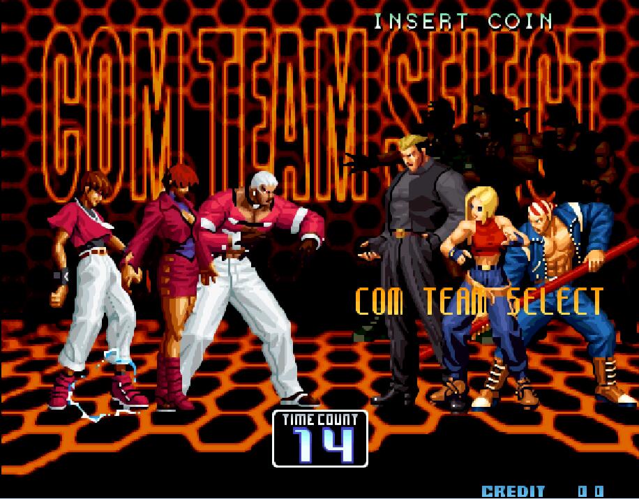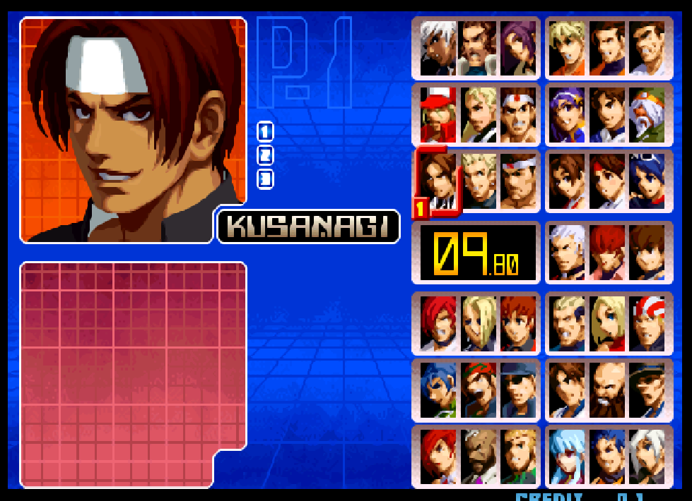在家用机模式中,还可以选用古利查力度、塞斯、温妮莎,以及一些隐藏的援助人物。在街机平台我们最多只能选用八神庵和草薙京。
