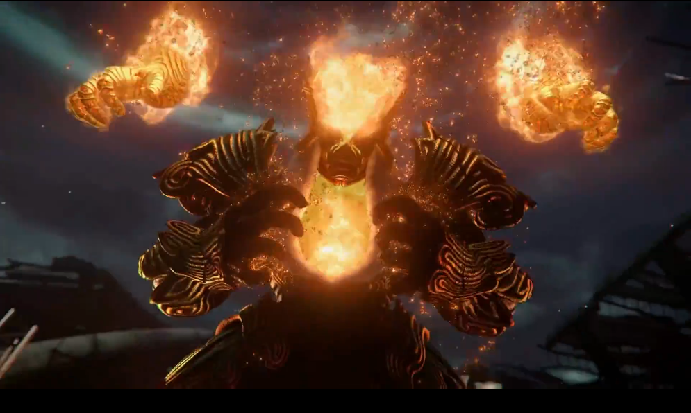体育场的上空突然被密密麻麻的乌云所笼罩,一大团的巨大的能量出现在乌云的中央,与此同时,巨大的闪电不断轰击着体育场。在一道接一道闪电的轰击下,体育场内犹如末日一般,被彻底摧毁,到处都是屋倒楼塌的景象。