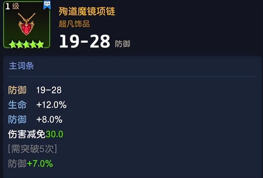 殉道魔镜项链:低配版大地项链,只能通过魔镜碎片换取。副坦的标配。缺点也是非常非常难洗。但是基本很少人会兑换,基本上都会优先兑换魔镜饰品。