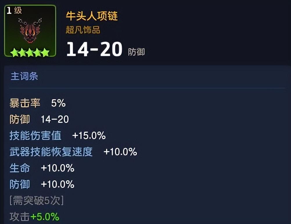 牛头人项链:最强的攻击饰品,适合所有输出角色使用,尤其在工会BOSS战。缺点是防御值比较低,还是非常难洗出高属性,只能通过600竞技徽章兑换。