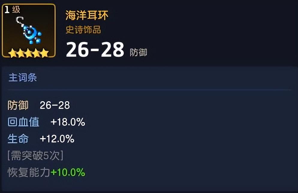 海洋耳环:奶妈职业的标配,高治愈值加成,现版本也非常容易满破。可以通过金币副本,道具副本,装备抽取,随机合成获得。