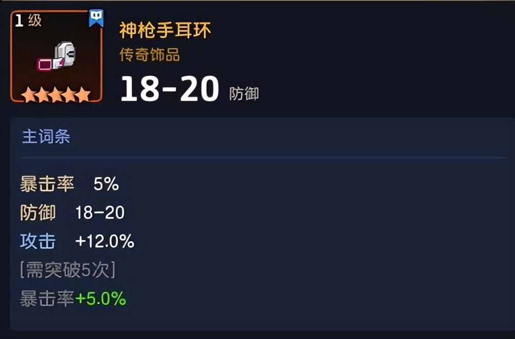 神枪手耳环:低配牛头人项链。基于牛头人项链兑换周期太长,所以该饰品作为工会BOSS战输出队友首选,需求量非常之大。可以通过金币副本,道具副本,装备抽取,随机合成活动。
