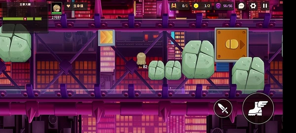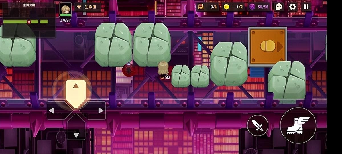 拿到磁卡后回到13-1关卡(剧情通关一次后再次进入关卡),来到天桥图示位置,用炸弹将隐藏在石头下面的加速带炸出来