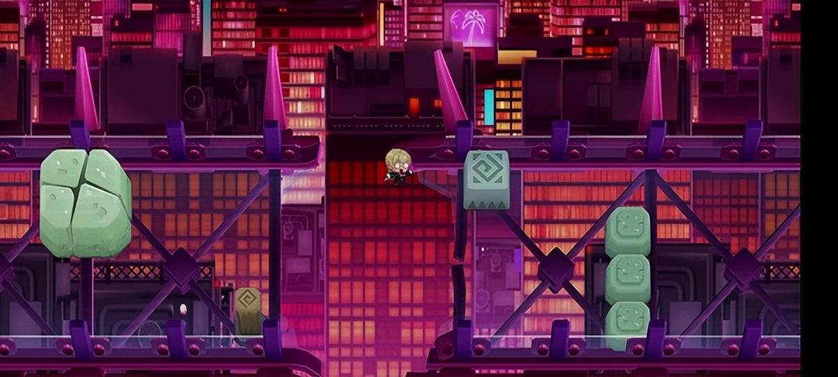 接着踩加速带自动冲向跳板(一定要踩加速带不能直接踩跳板),角色就会因为落地的地方被石头挡住而掉下断桥