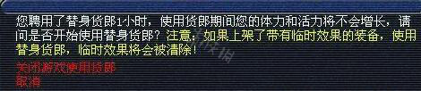 选择雇佣替身货郎的时间(1~5小时),选择时间后弹出下面对话框: