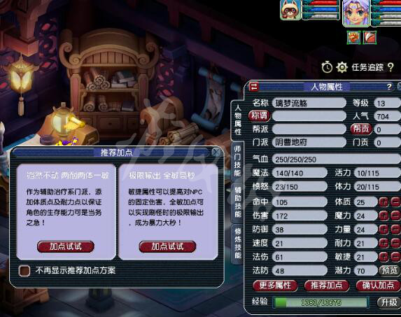 作为辅助治疗门派,添加体质点及耐力点以保证角色的生存能力可是当务之急。