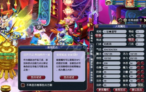 作为辅助治疗门派,添加体质点及耐力点以保证角色的生存能力可是当务之急。