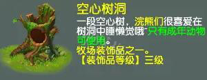 上图的竹叶青青是装饰性饰品,这类饰品唯一作用就是美化牧场。饰品还有一些是功能性饰品。比如空心树洞。