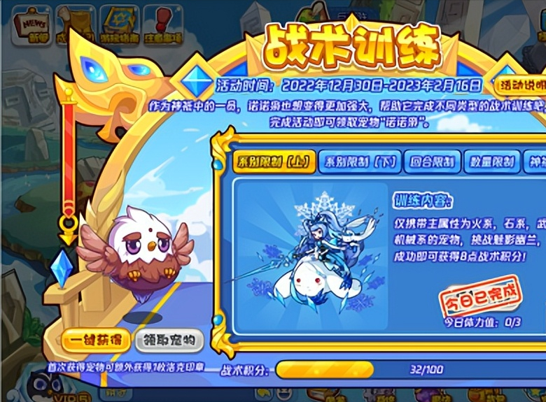 5、累计获得100点战术积分即可领取:诺诺枭。