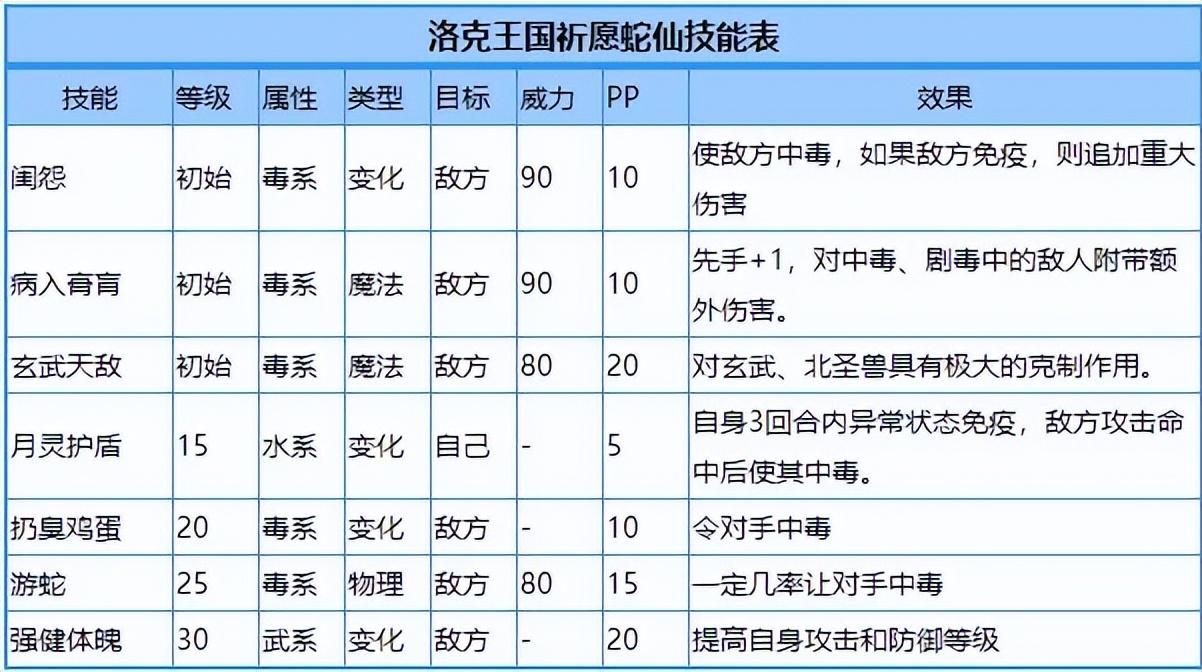 洛克王国祈愿蛇仙技能搭配这个宠物的技能推荐闺怨+病入膏肓+玄武天地以及月灵护盾。