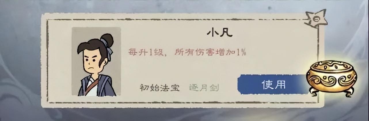 说到这里可能有很多小伙伴会说,那既然小凡是后期角色那前期会不会也很弱呢?no no no 虽然小凡的技能效果是利于后期阶段,但是大家别忘了小凡的初始法宝逐月剑,逐月剑可以朝前方挥出短距离的剑气,伤害和穿透力极强,前期刷怪效率极高,突围能力也是罕见的强悍。