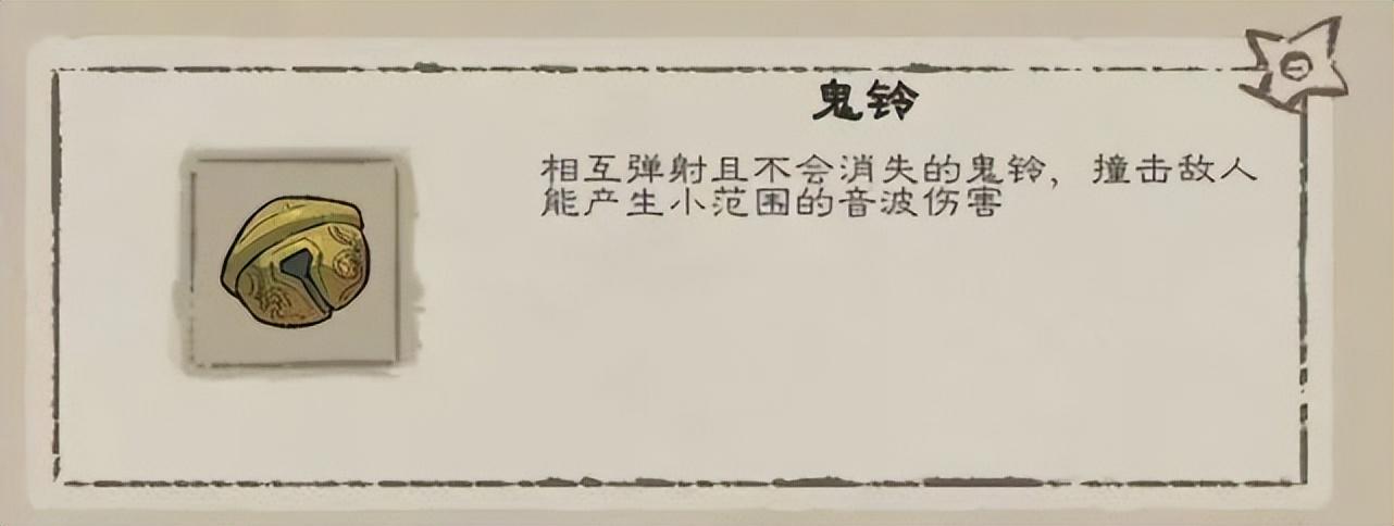 鬼铃--召唤1个相互弹射且不会消失的鬼铃,撞击敌人产生小范围的音波伤害。