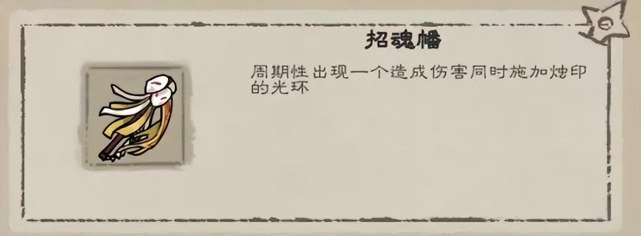 化身法宝招魂幡--周期性出现一个造成伤害同时施加烛印的光环。