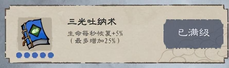三光吐纳术--生命每秒恢复+5%(满级增加25%)