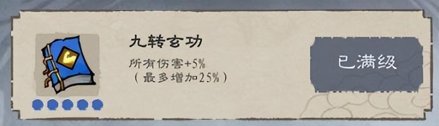 九转玄功--所有伤害+5%,(满级增加25%)能够给玩家的任何攻击进行增伤效果。