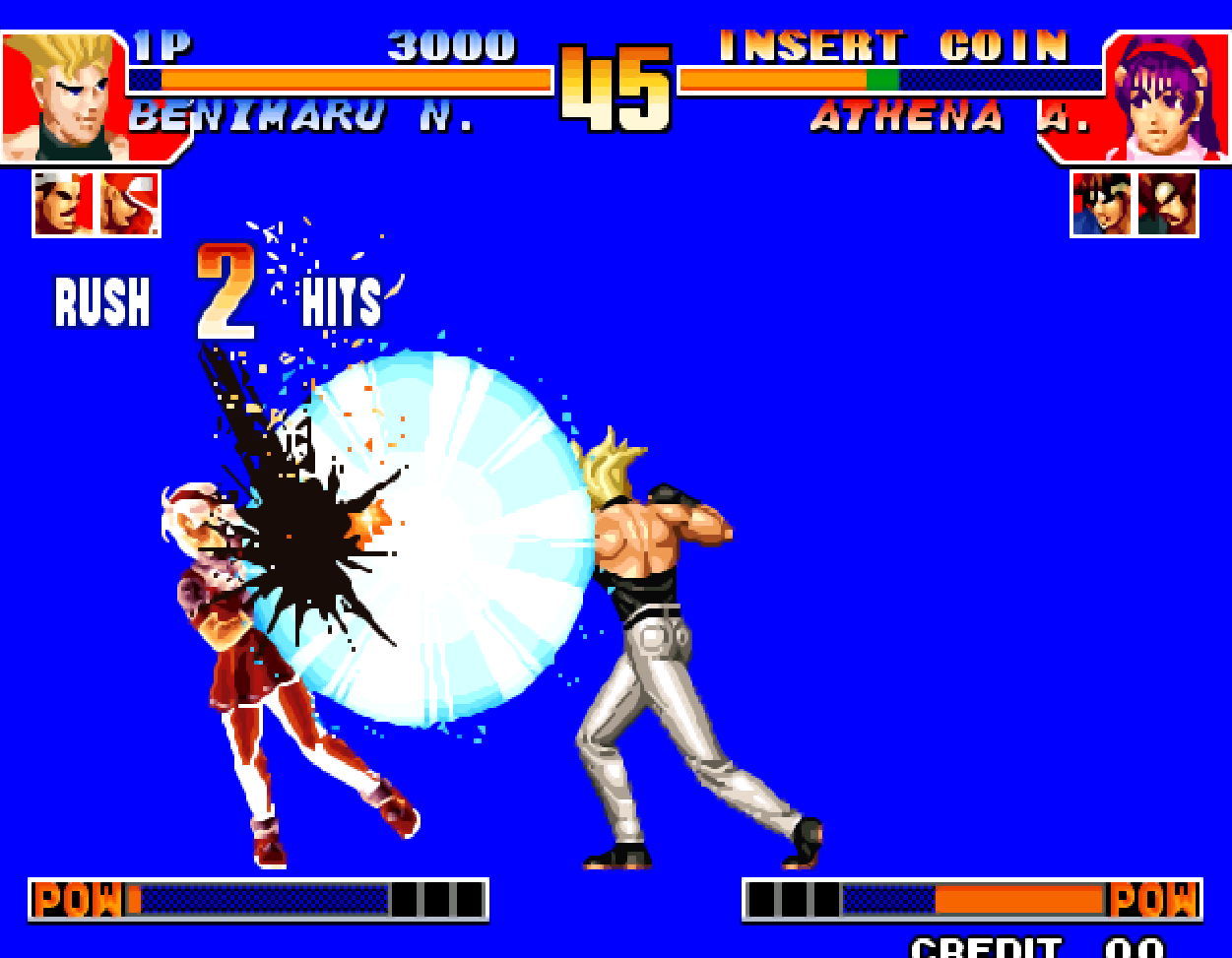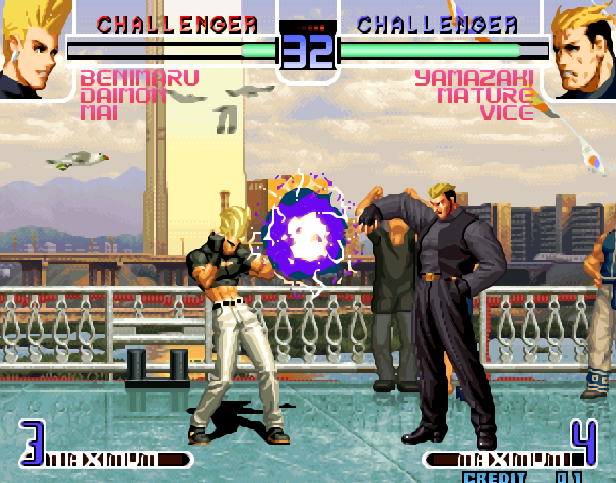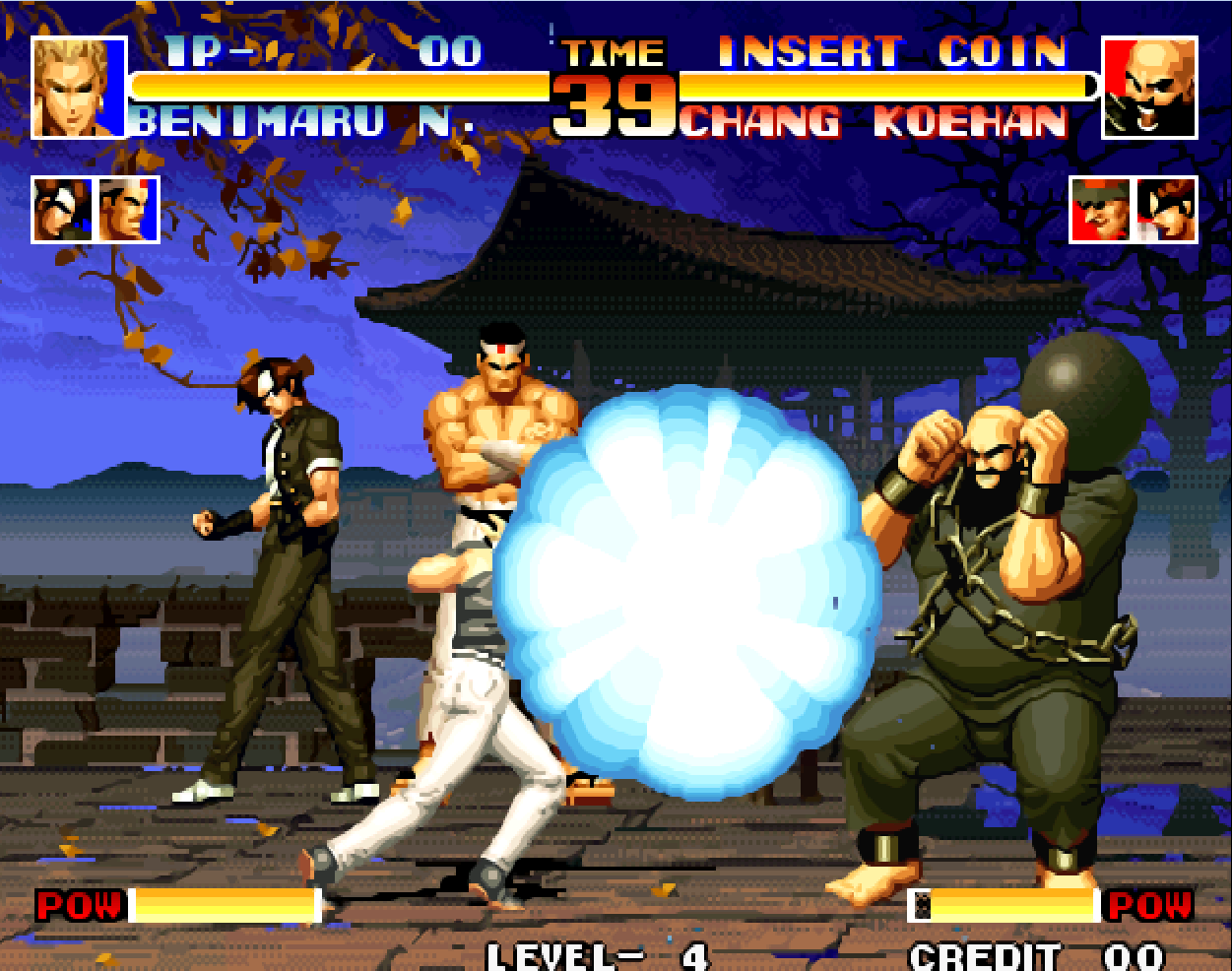 红丸、草薙京和大门五郎都是《拳皇94》第一次出场的,没有在龙虎和饿狼之类的游戏中进行打磨过,不过他们的招式雏形已经基本上确定了。