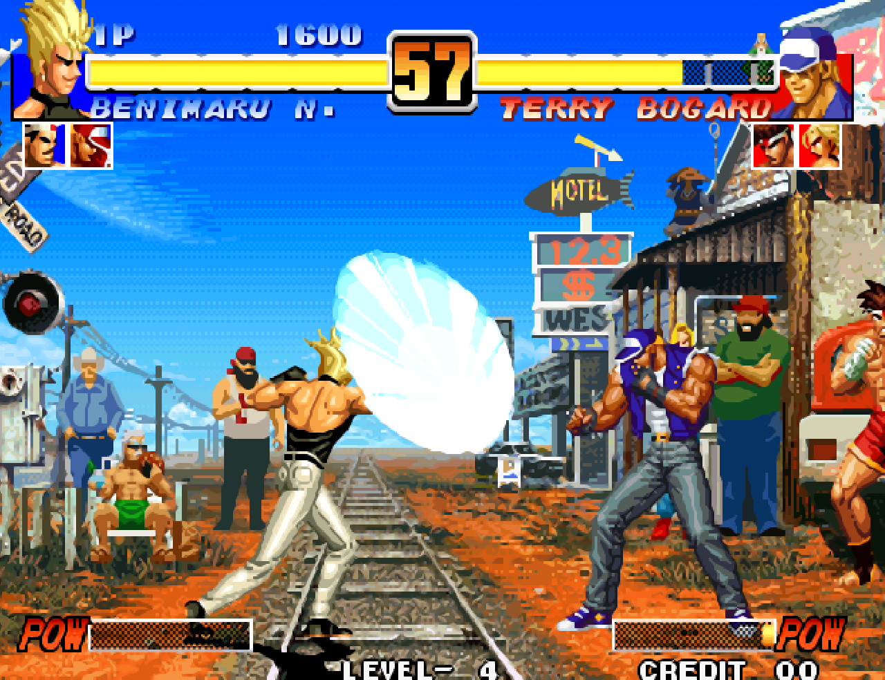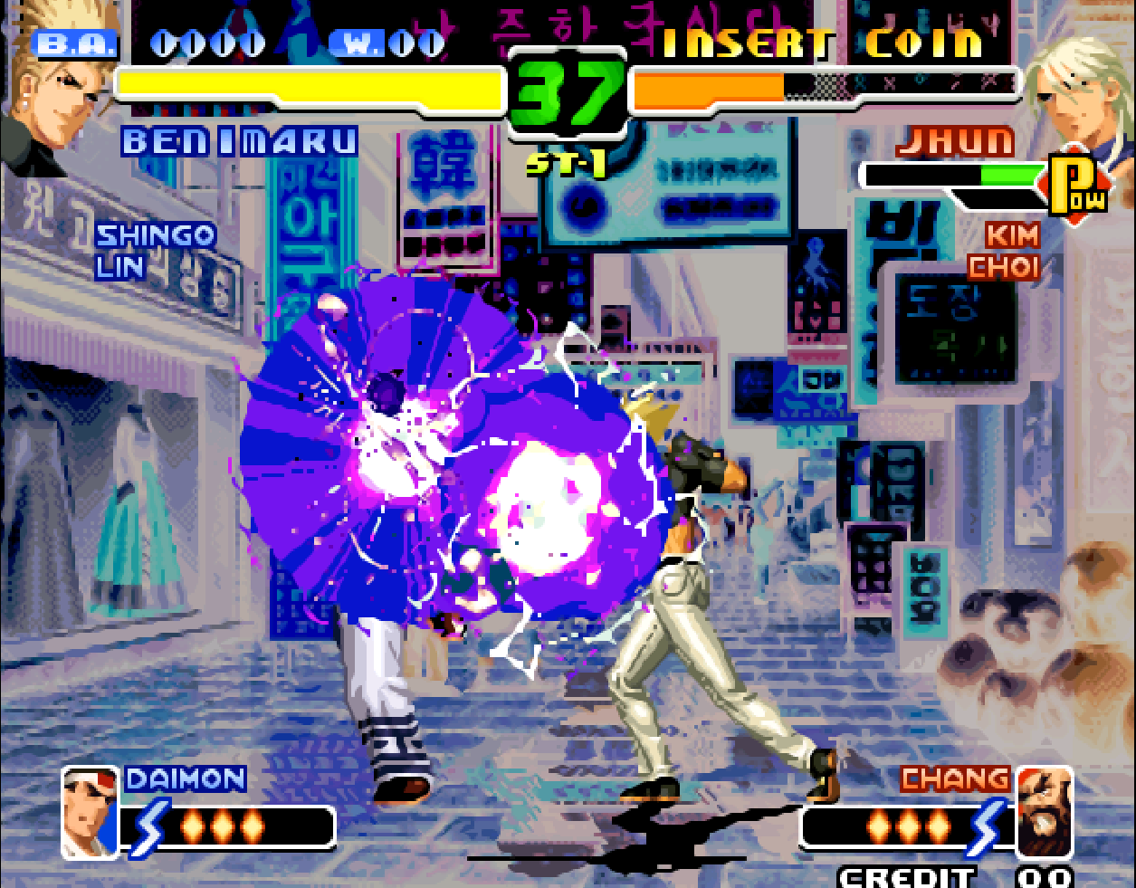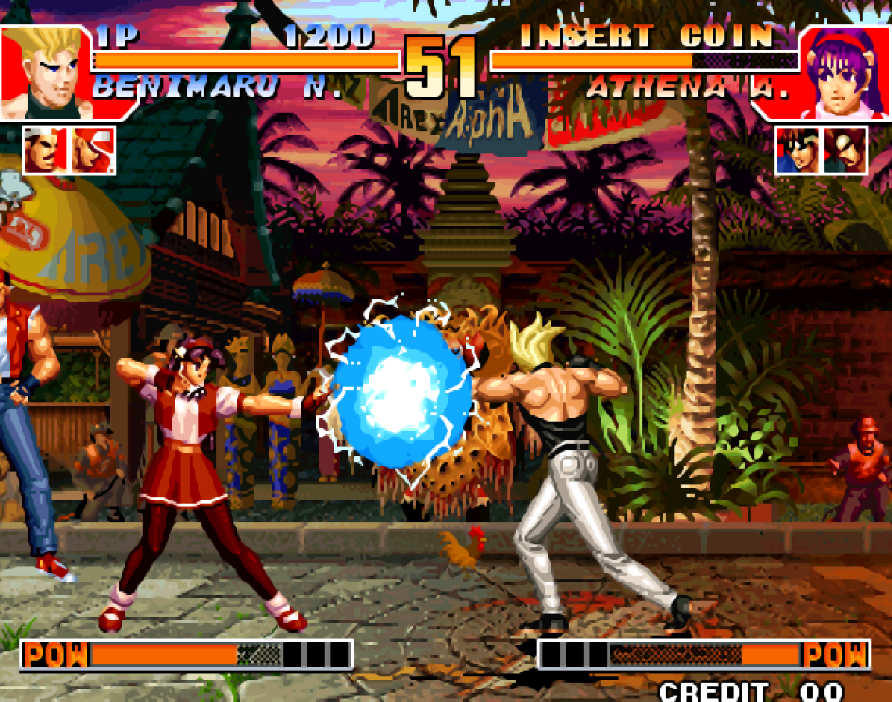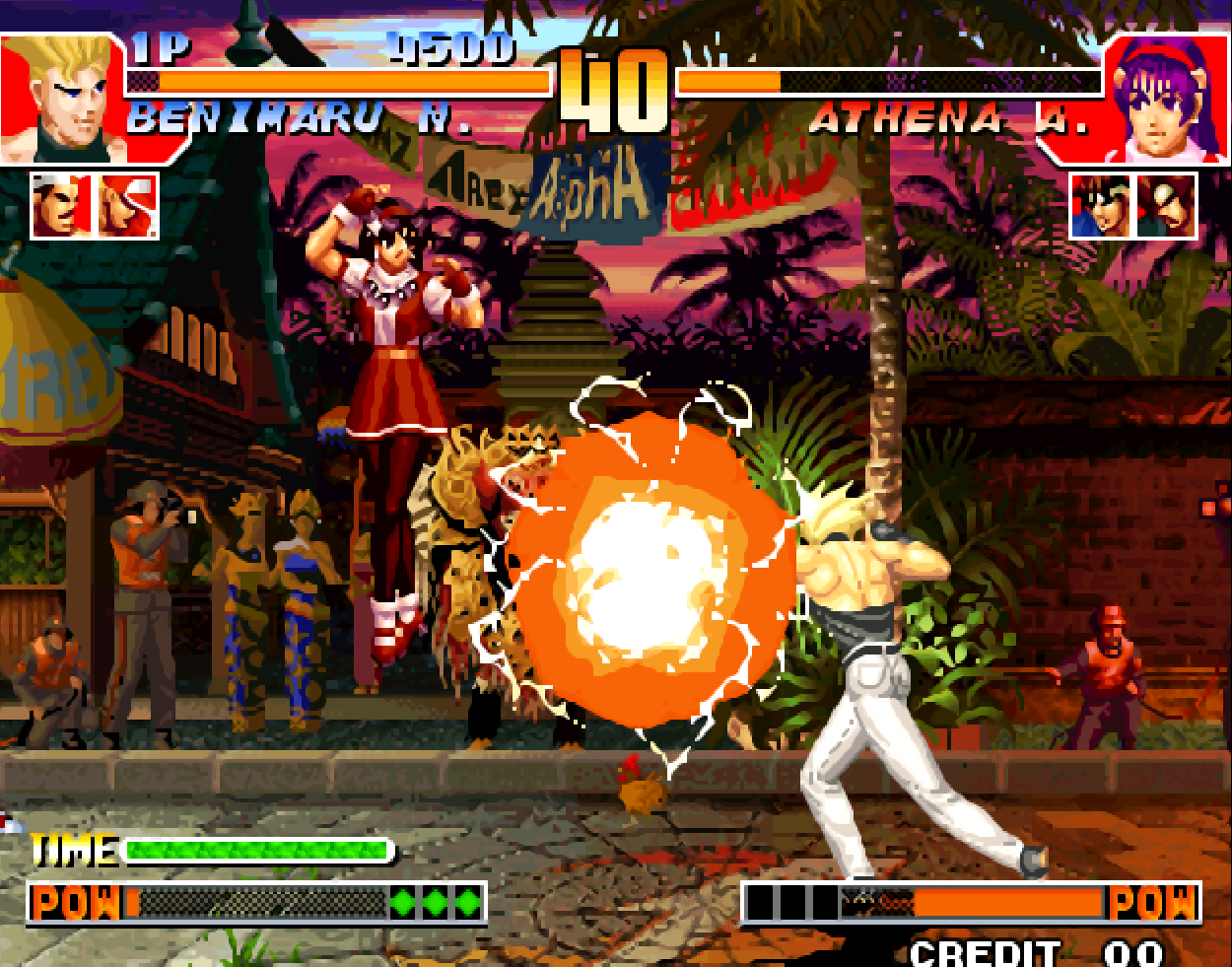 红丸、草薙京和大门五郎都是《拳皇94》第一次出场的,没有在龙虎和饿狼之类的游戏中进行打磨过,不过他们的招式雏形已经基本上确定了。