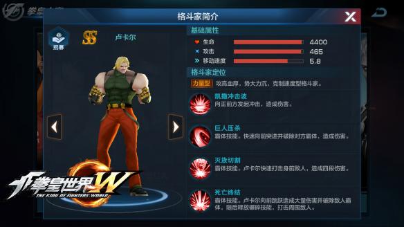 在《拳皇世界》中,卢卡尔也依旧是力量与实力的绝对象征,超强霸体以及不可比拟的强大生命力诠释了他碾压性的实力。