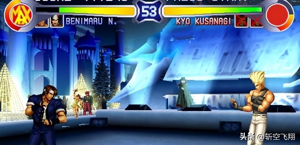 3.同时期可玩格斗游戏很少,但并不是因为游戏种类少或者游戏渣,而是,没!环!境!!机厅老板都是为了赚钱,吃币率不高的游戏都会换成热门游戏。KOF这个系列一次可选3人,加上97上手简单,指令精度非常宽松,难度对比前作可以说是简单到小孩子稍加练习就能做到通关,这在之前的3作是根本不可能的事。角色造型时尚(代表人物:八神庵),招数华丽,连技吸引眼球,观赏性强,在当时会一套死的连技常常被围观群众投以崇拜的目光。当见识过了这种一次可以玩好几个人,并且还有华丽的表演招数的游戏后,还会去碰其他上手相对麻烦的1V1格斗游戏么。就个人同时期见过同基板的格斗游戏,RB饿狼、RBS饿狼、龙虎之拳2、真侍魂、天草降临、豪血寺、天外魔境、火热火热7、双截龙、月华剑士都比97有意思。