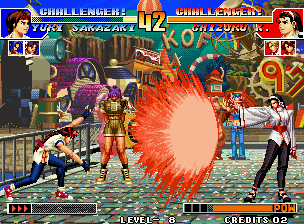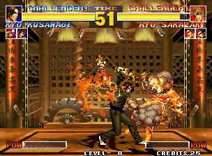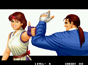 同时,开始和饿狼传说与龙虎之拳做切割,为此设计了原创的八神庵将来自饿狼传说的Billy和龙虎之拳的如月影二揍个半死的情节。