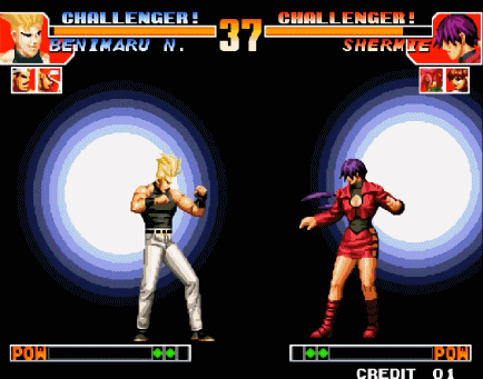 那么八稚女碰上雷光拳是什么效果呢?八神庵输。