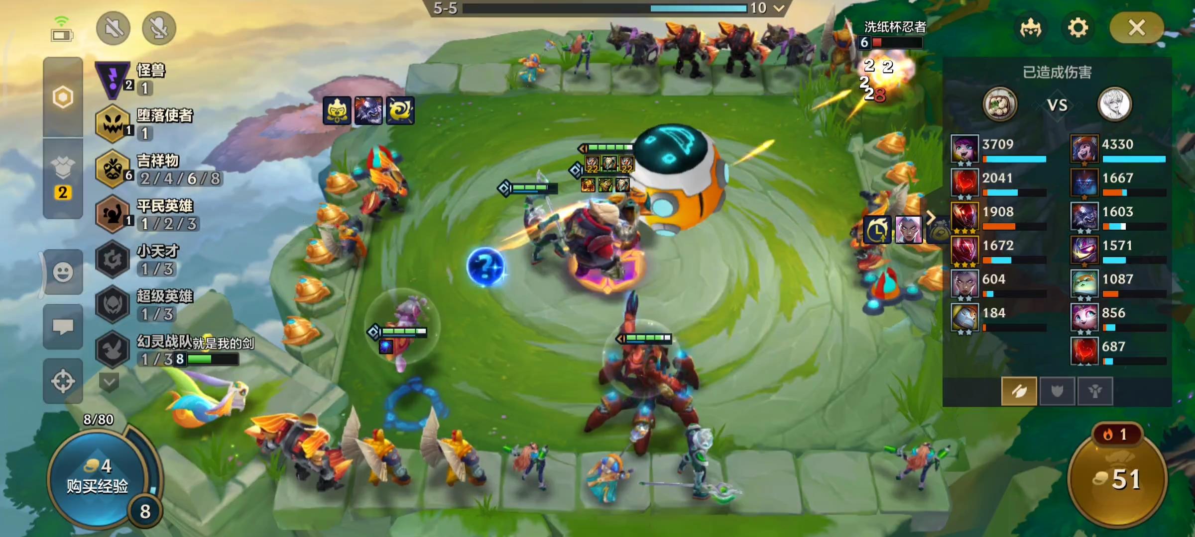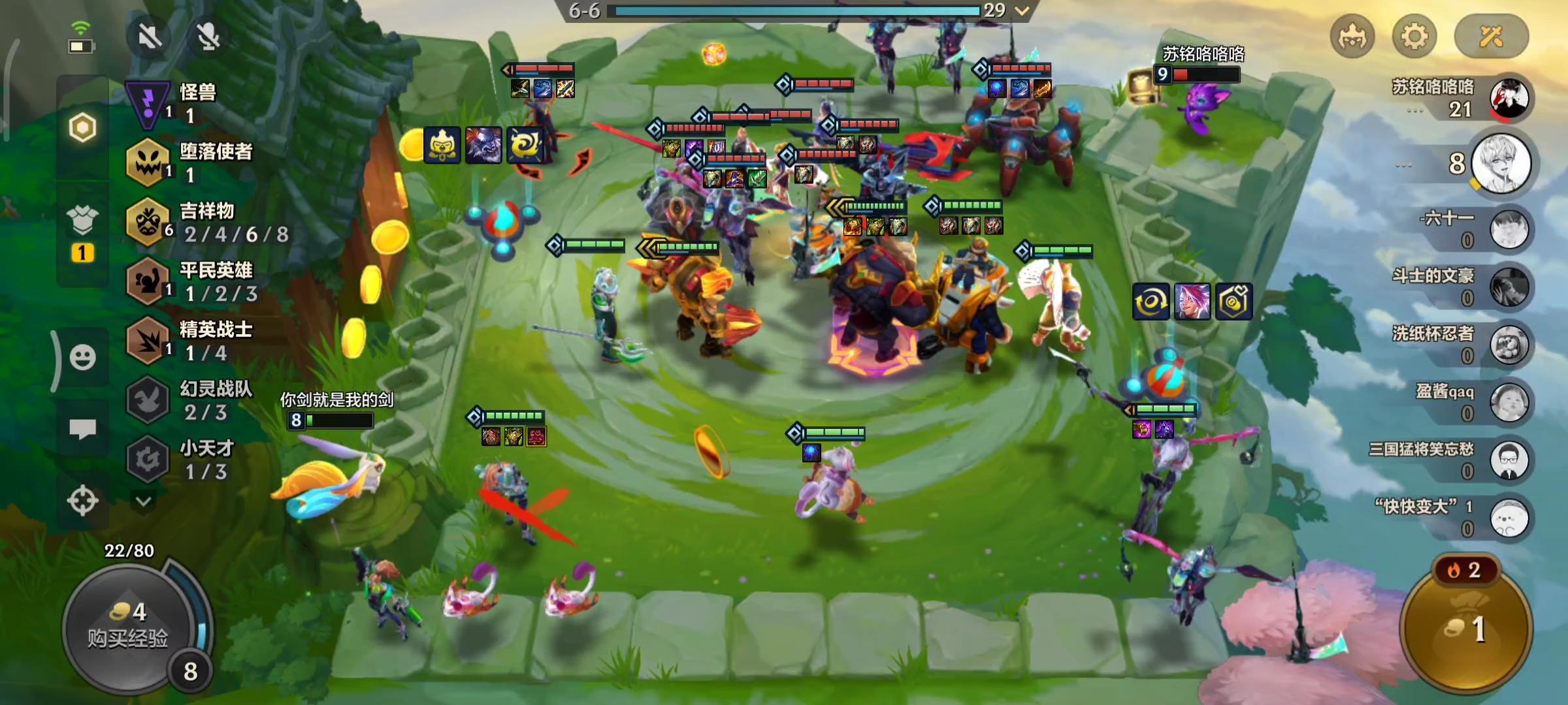 到了八人口之后,有两个选择,血量高可以稳血,那么自然是上九人口更稳。如果血量比较低,已经没有能力上九,那么就直接在八人口梭哈,能刷到努努一般就能锁血。当然,努努也需要升两星,一星的努努很容易被集火秒掉。