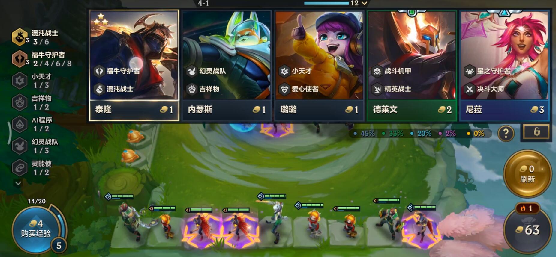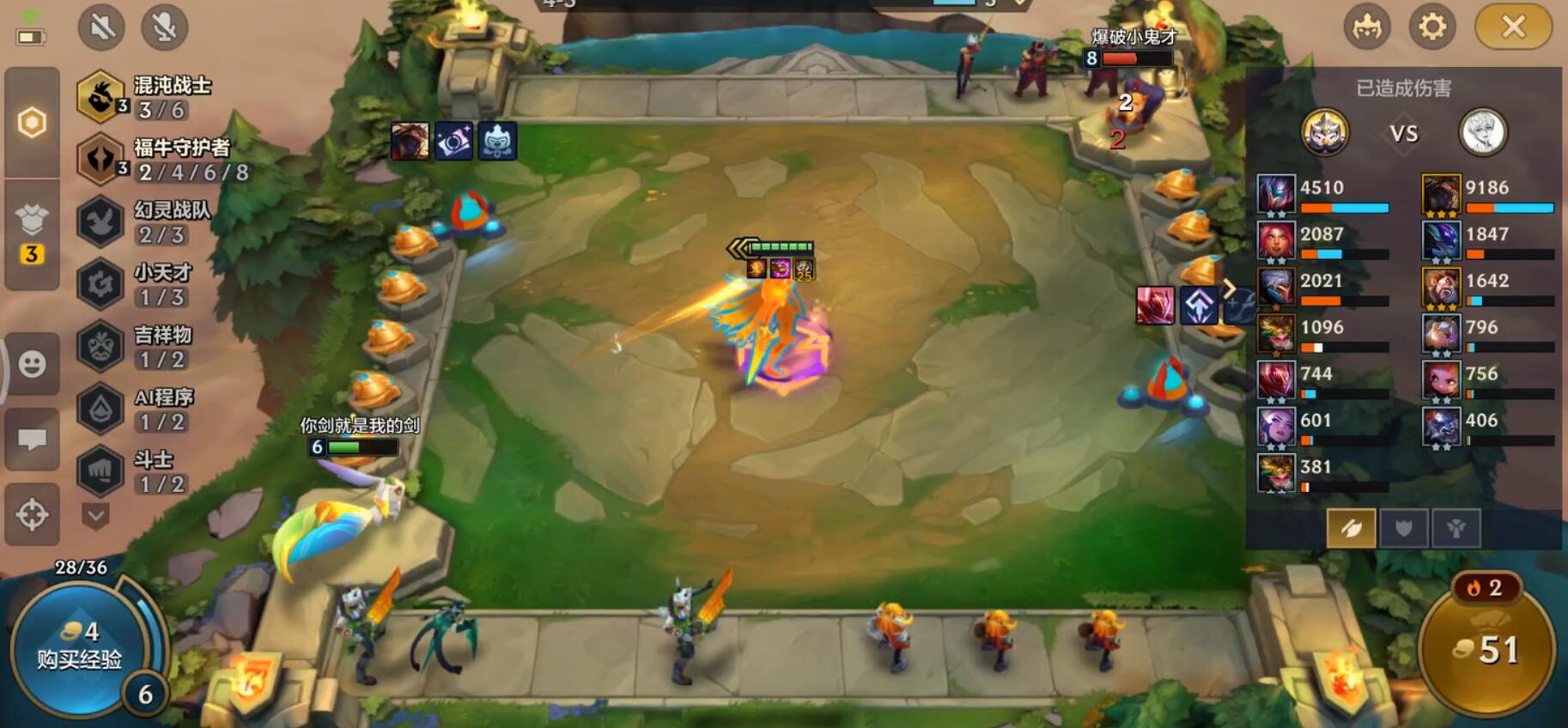 除了福牛守护者和混沌战士之外,还搭配了幻灵战队和秘术师的羁绊。