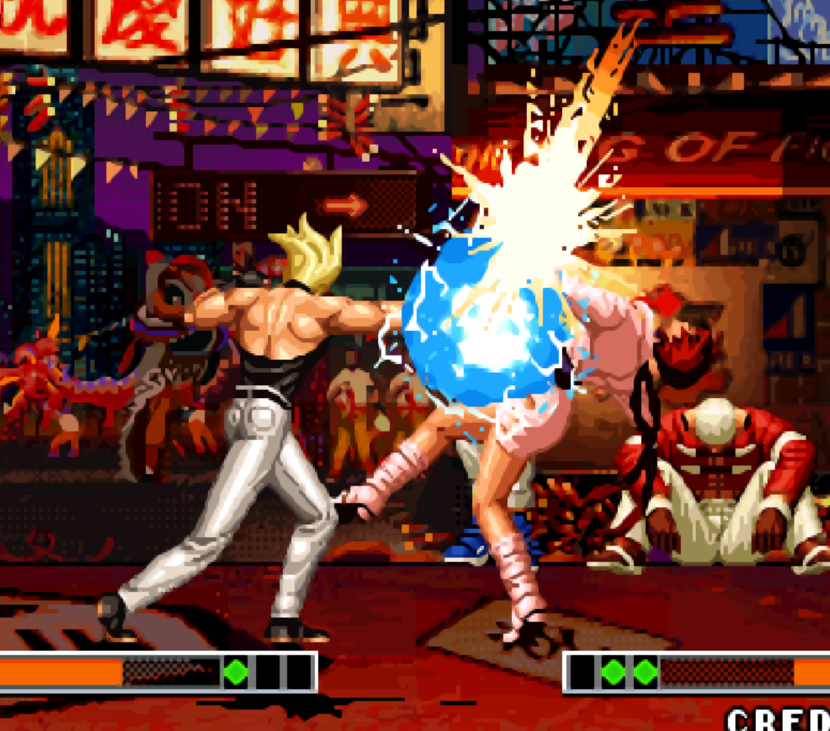 由于《拳皇97》出招指令的简化,菜鸡玩家随便乱搓都能将“雷刃拳”和“雷光拳”放出来,即使是上手的玩家在面对菜鸡乱搓时都不敢轻易冒进。