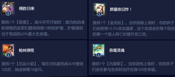 中期就到了这套阵容的强势期,到中期能D到一张女枪、虚空女皇就可以保证强度。女枪的英雄强化【枪林弹雨】能很好的保持节奏。