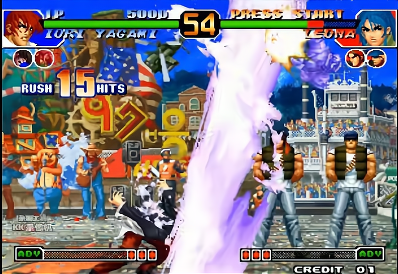 风云再起版:是拳皇系列公认系统最平衡最完善的一代,增加了隐藏人物,生存模式和通关画面。