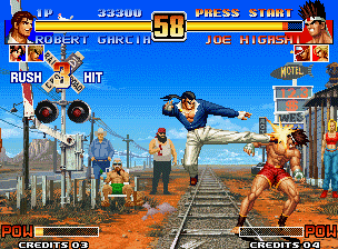 SP:相比拳皇95原版血槽增加三分之一血量,血槽变成绿色,增加了一些连招,如罗伯特空中出招后仍可以出飞燕龙神脚,大门可以BUG震。