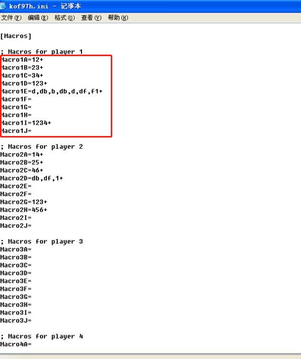 4.你把Macro1A=12+改成Macro1A=d,df,f,df,d,db,b3然后保存 (注意:下面的Macro1B...J都是可以改的,一共支持十条宏命令)