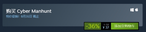 游戏的国区售价定为58元,目前游戏处于上线促销阶段,有一个36%的折扣价格,购买仅需37元。