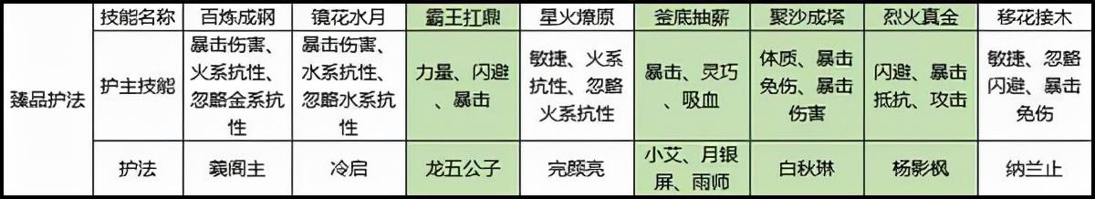 护法搭配:护法共分为5个品质,分别为:臻、绝、奇、良、凡。其中包含10个臻品护法、10个绝品护法、10个奇品护法、10个良品护法和9个凡品护法,共49个护法。护法最大上阵数量会随着玩家等级提高而提高,起始位1个,最大位4个。其中护法品质越高护主技能提升的属性也越高,护法战力越高,帮助也就越大。白麓为木系,输出为主,需要增加攻击、暴击、暴击伤害,不同的护法拥有不同的护主技能,越高品质的护法相同护主技能加成越高,在选择护法培养时主要需要注意的就是需要挑选适合本职业的护主技能。