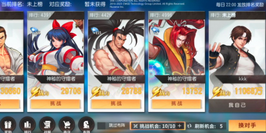 1.“格斗竞技”模式,经纪人自行挑选对手,可以刷新五次,挑战十次,根据击败的敌人,来提升排名,低排名大多是AI,难度较低,很容易打,但是奖励非常丰厚,可以获得大量钻石,俗“挖矿”。