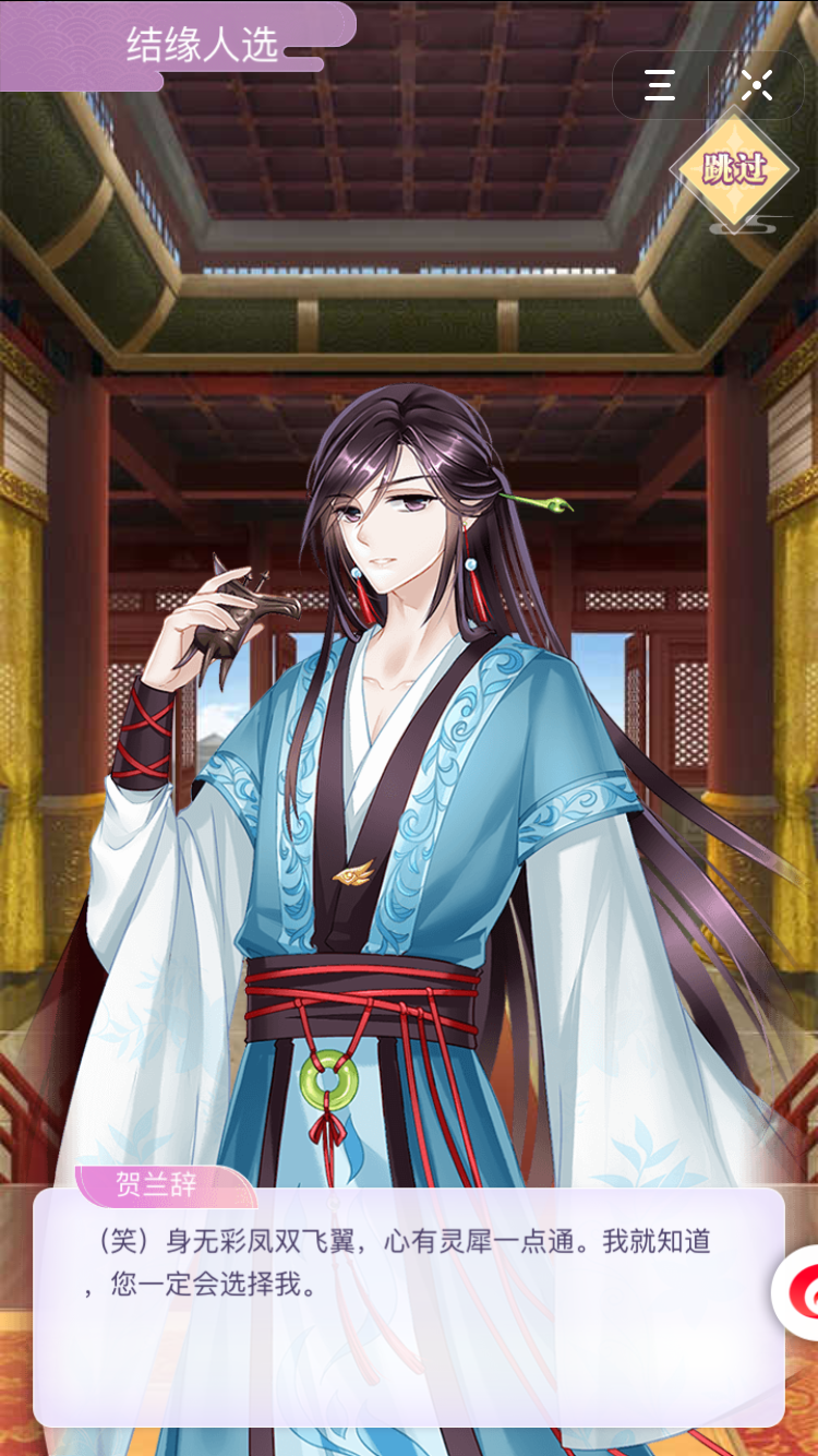 游戏中玩家开局就会遇到选择,开局系统会送给玩家两名大帅哥,玩家要从这两名中选择一名作为自己的结缘人选,随后的很多剧情中,选定的结缘人选都会陪伴玩家。