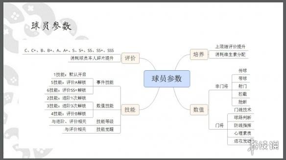 通过这张图我们可以看到,普通的球员从c到sss一共有11种评价,玩家们可以消耗球员本人的碎片来提升他的等级评价,每提升一个评价就能多获得一个技能。评价越高技能就越多也越强势,球员本身的实力也会更强大,高阶球员的技能当然要比没升级的时候要强,在赛场上是表现自然会更加优秀。看完这些,你应该明白了为什么没升级的球员在后期容易出现吃力的现象了吧?