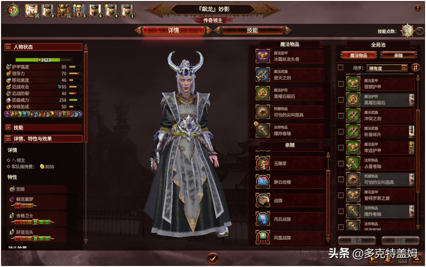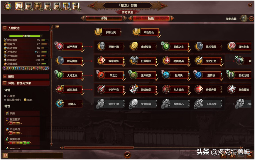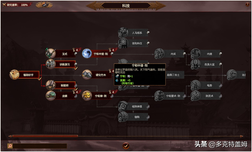 在《全面战争:战锤3》中,每个种族都有属于自己的科技树系统,各不相同,不如震旦的科技树路线在选择的时候就要求玩家要时刻考虑着阴阳和谐。对于领主和英雄,也有着自己的技能树系统,随着领主和英雄的等级提升,玩家可以用获得的点数来解锁、升级技能。领主和英雄还可以通过佩戴装备提升自己的战场能力。