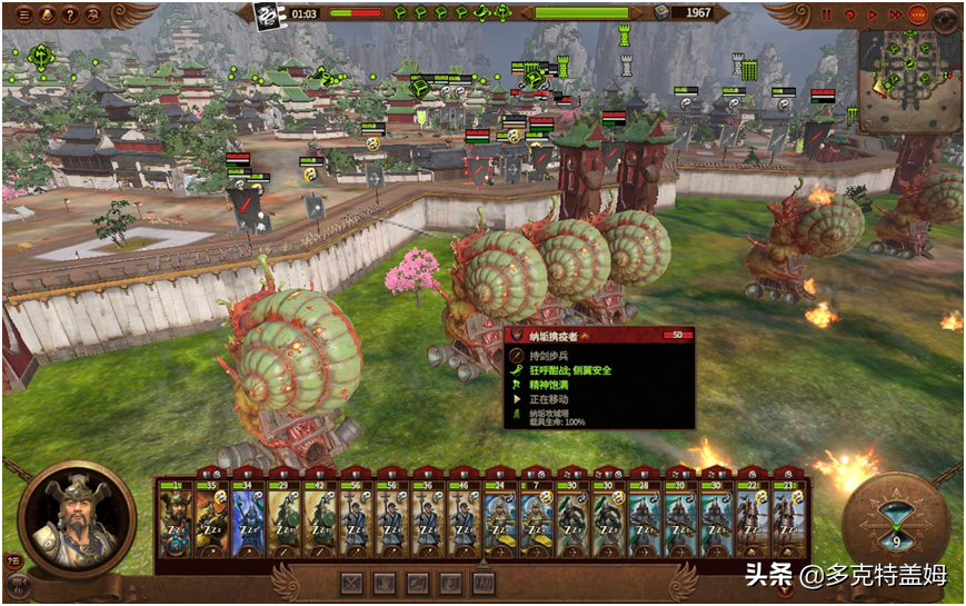 宏大的战场氛围,这是《全面战争》系列永远都不会丢掉的特色。在这方面《全面战争:战锤1&2》都做得很好,《全面战争:战锤3》从目前来看虽然变化不大但依旧出色,而且还加入了许多细节,玩家在选择有雷属性的震旦英雄进行大战场战斗时,可以发现当鼠标滑过远处的山脉时,会有一道闪电划过。《全面战争:战锤3》的建模也更加精细且动作细节更加完善。近/远程兵种的配合、骑兵的拉扯冲锋、飞行单位的天兵神将、远古巨兽的撼天动地、传奇领主的以一当十、魔法单位的瞬息万变、艰难的城寨作战、变化的天气系统等等这些都让《全面战争:战锤3》的战斗更加完美。