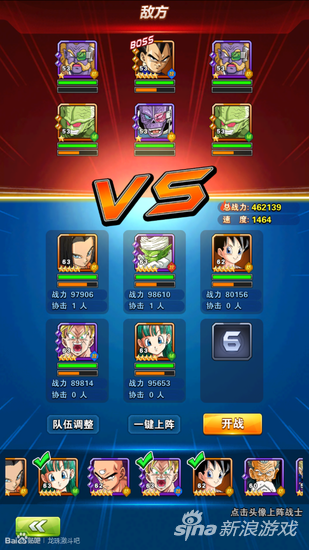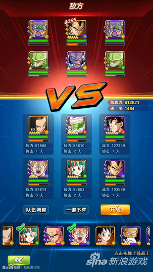 解析:依靠未来饭优先打攻击高的技能优势,对贝吉塔进行一轮输出,2号位贝吉塔技能会优先攻击血量较低的对面贝吉塔,而五号位的小沙鲁(蓝琪)依靠技能可以直接攻击后排人物,利用三个英雄的技能特点将贝吉塔击杀。什么你说打不死,就退出赌暴击咯。