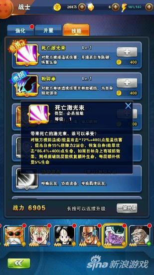 1、必杀技—死亡激光束:对敌方后排造成伤害,有概率对其释放眩晕或造成额外伤害。
