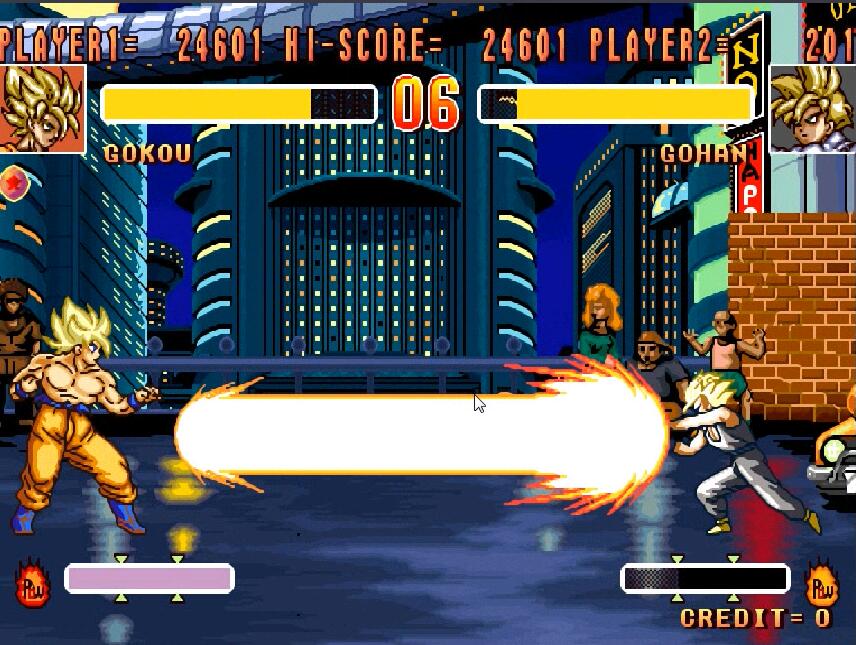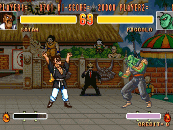 当年我们在游戏厅能够接触到的只有两款格斗游戏。其中最火爆的则是《龙珠Z超武斗大会》,对动画和漫画中的招式还原度比较高,是那个年代不可多得的精品。