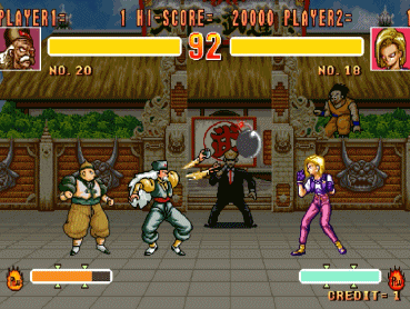街机版发行的时间,最强大的对手是沙鲁。此时的最强必杀正是:闪光炮