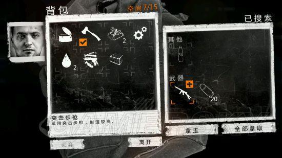 突击步枪一把,子弹20发,酒一瓶。收获不错,晚上不用怕强盗了,我们有枪了,晚上应该不会再被人抢东西了。
