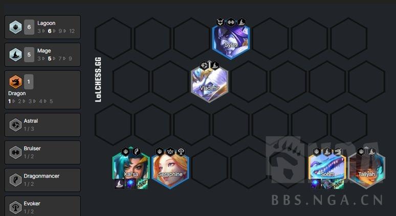 PS:不过卡莎或许会有个大问题,水龙阵容总体过度很平滑,而且即使其他玩家不玩水龙前期也有可能会用水龙羁绊来打前几段奖励,很有可能大环境很难拿牌。