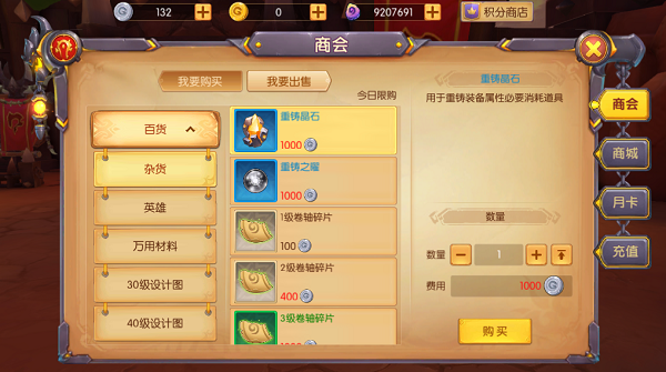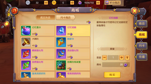 重铸晶石和重铸之曜的获取:可在商会中花费银币来获得。