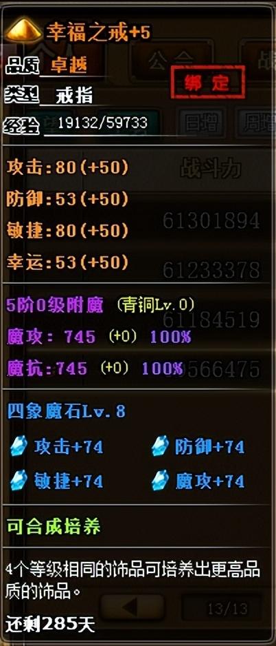 卓越甚至传说的手镯戒指,较难获取,而且升级经验需求量高,萌新资源有限,建议先将精良品质的首饰养到+5或者+6之后再着手卓越品质(40级开放附魔后,首饰未到+5,附魔属性无法收益100%)