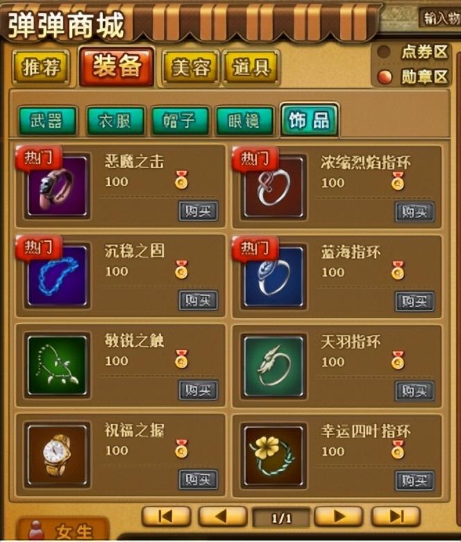 打开商城勋章区,36级即可解锁,恶魔之击和浓缩烈焰指环攻击高其他属性相同,敏锐之触和天羽指环敏捷属性较高,祝福之握和幸运四叶指环幸运属性较高,